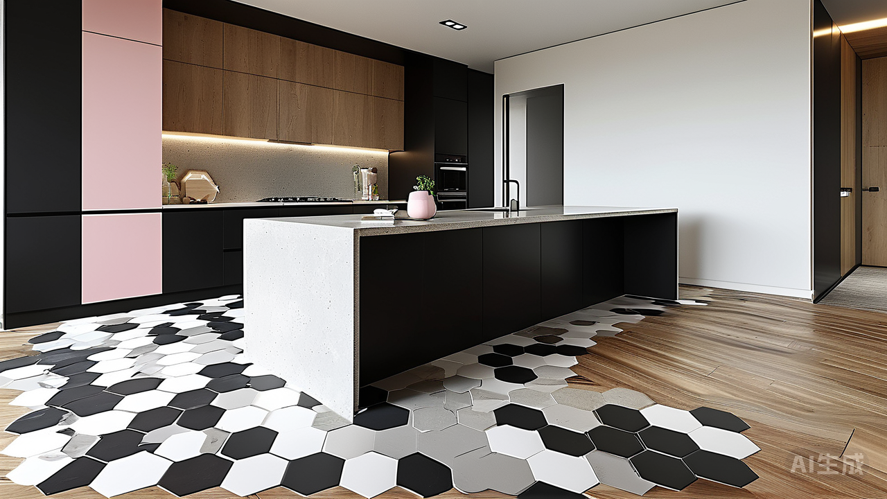 六角砖早已不是浴室专属。通过排列组合与材质混搭,它能演绎出无限可能。